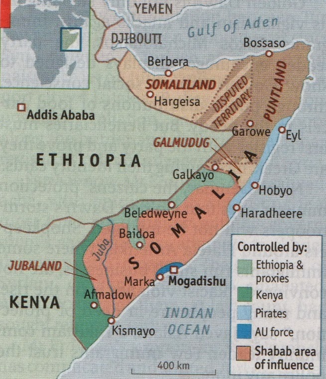 Somalia—pretty much everything west and south of Mogadishu, the capital—until being dispersed by troops from